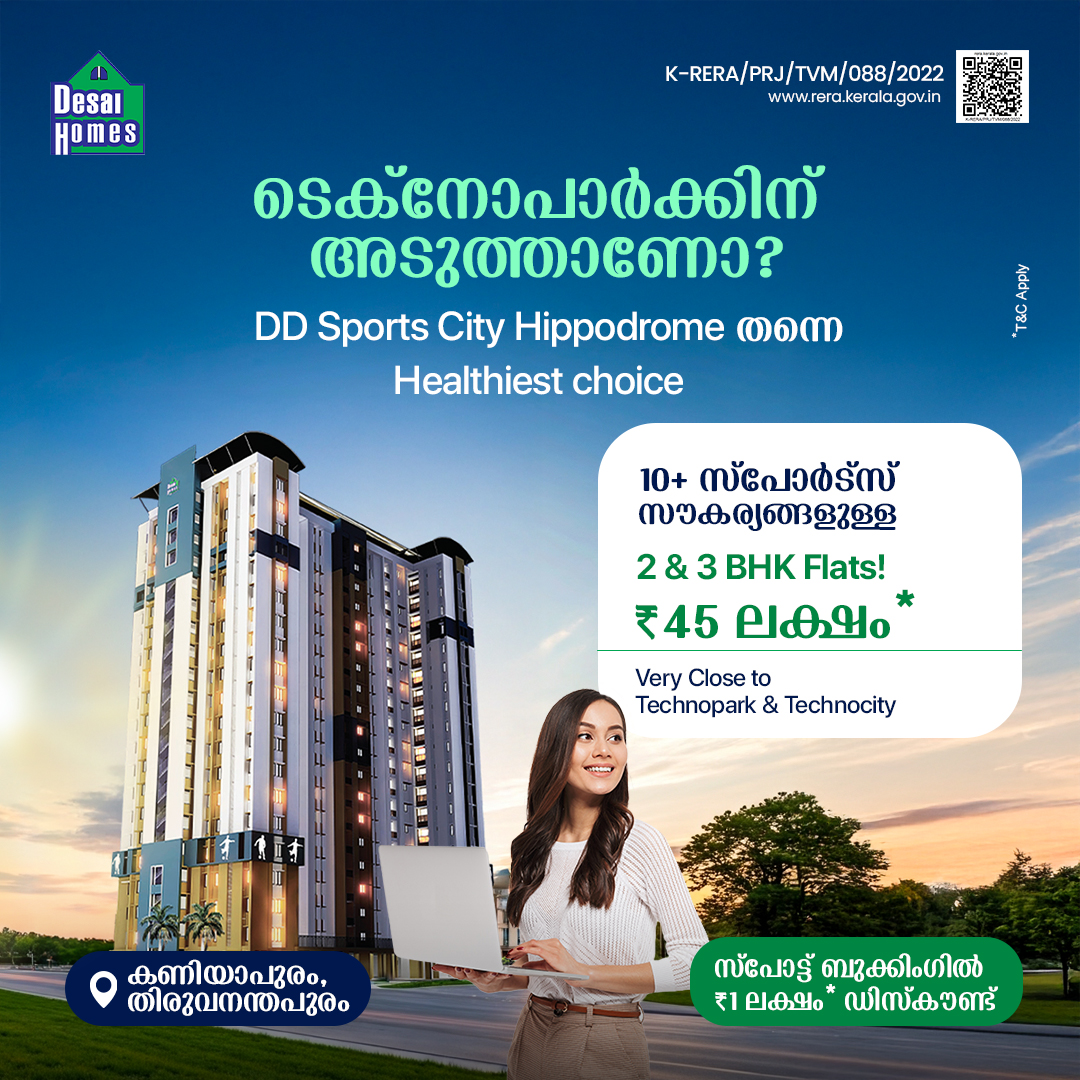 A one-stop for every sport at your doorstep is no longer a faded dream. Live the life you have always dreamt of in Hippodrome with ease. We provide you novel yet exotic homes. Live in a place where you can feel fit and stay healthy. Being Kerala's first sports themed residential project, DD Sports City is host to 125 cents of the beautiful DD Hippodrome. 2 & 3 BHK apartments ranging from 861 sq.ft. to 1017 sq.ft. make for perfect living spaces. Activate your active mode with us.